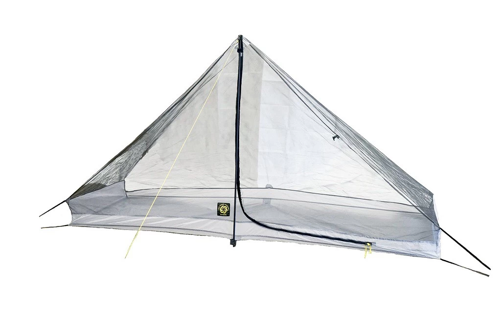 La moustiquaire Serenity NetTent de Six Moon Designs est une chambre qui peut accueillir une personne. Elle est pourvue d’un sol imperméable en nylon enduit de silicone de 30 deniers et se monte à l’aide d’un mât (non fourni) ou d’un bâton de randonnée et de six sardines (non fournies).