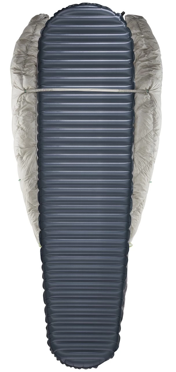 Le Vesper 20F/-6C Quilt de Thermarest est un système de couchage conçu pour les adeptes du minimalisme et pour les randonneurs à la recherche d’un sac offrant un confort suffisant tout en limitant le poids dans le sac à dos. Ce sac de couchage est particulier, car il optimise l’isolation sur les côtés et sur le devant du dormeur. Sans fioritures, Il est dépourvu de capuche, de colerette et n’a pas de garnissage dans le dos, car par principe, c’est votre matelas de sol qui servira d’isolant.