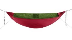 La ligne de crête intégrée permet de garder une forme confortable et de fixer le sac de rangement. Hamac réalise en toile de parachute ultra résistante et agréable au toucher.