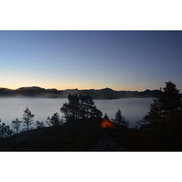 Pour transformer cet abri en véritable petit camp de base, vous pouvez utiliser le poêle à bois Lavvu d’Helsport qui est compatible avec ce tipi : une sortie au niveau de la cheminée permet de faire sortir le tube du poêle pour évacuer les fumées. Le poêle Lavvu est un élément vendu séparément. Si vous utiliser le tapis de sol, sachez qu’une encoche amovible dans le footprint permet de poser le poêle sans risque de brûler le tissu.