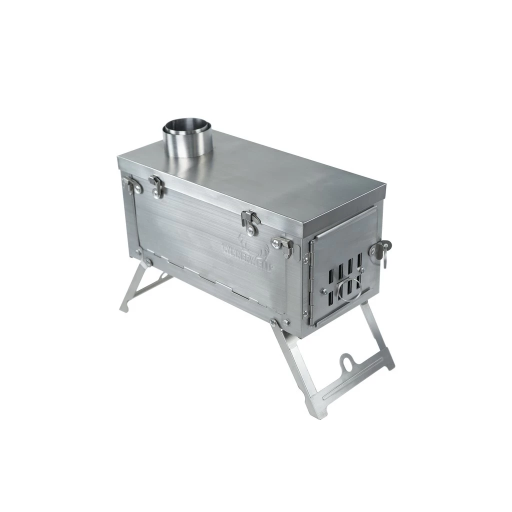 Le Fastfold Ultralight Backpack Titanium Camping Stove de Winnerwell est un petit poêle à bois nomade. Réalisé entièrement en titane, il est très compact et léger. Il peut facilement être transporté lors de randonnées hivernales ou être utilisé pour un camp de base. Il est compatible avec les tentes et les tipis disposant d’une ouverture pour un conduit de cheminé (Ø 6 cm) et mesurant moins de 1,95 mètres de haut. Le conduit doit dépasser de plus de 25 centimètres minimum.